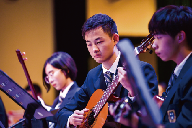 • 学生可以演奏中国传统乐器,例如二胡或是古筝,学习并体验东西方文化融合