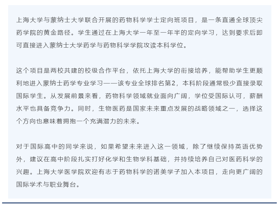 开启药物科学黄金赛道:上大-蒙纳士定向班项目为我校学子铺就国际升学新路径!