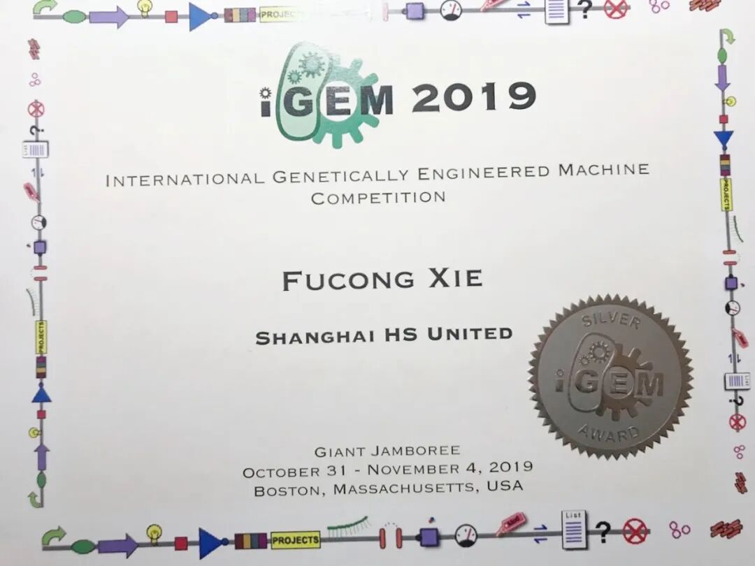 After I entered the newly-built international school, I found my learning capability keeps growing. The reason why it occurs is not biology is easy, or my previous good English and biology foundation, but the strong interest and inspiration that I have obtained in biology. For this reason, I also did lots of self-study to extend my academic career. For example, I spent every summer in the laboratory instead of enjoying holiday. Last summer, I won a silver medal in an international biology competition--International Genetically Engineered Machine.