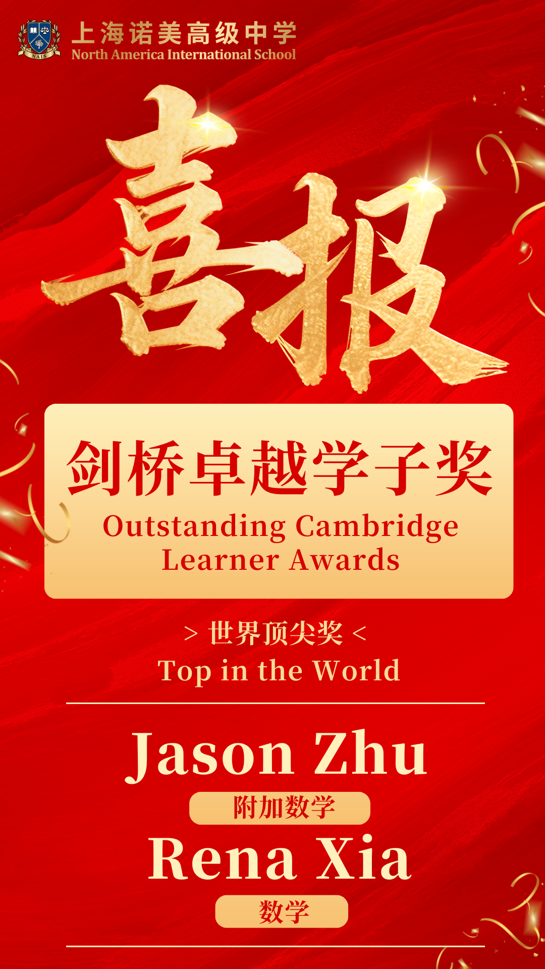 近期剑桥大学国际考评部官方公布了剑桥卓越学子大奖名单,我校两名学子Jason Zhu、Rena Xia凭借超凡实力,从全球众多考生中脱颖而出,荣获世界顶尖奖(Top in the World)!此奖项旨在表彰在单一科目中获得全球最高标准分的卓越学生,代表着该科目领域的全球最高学术水平。